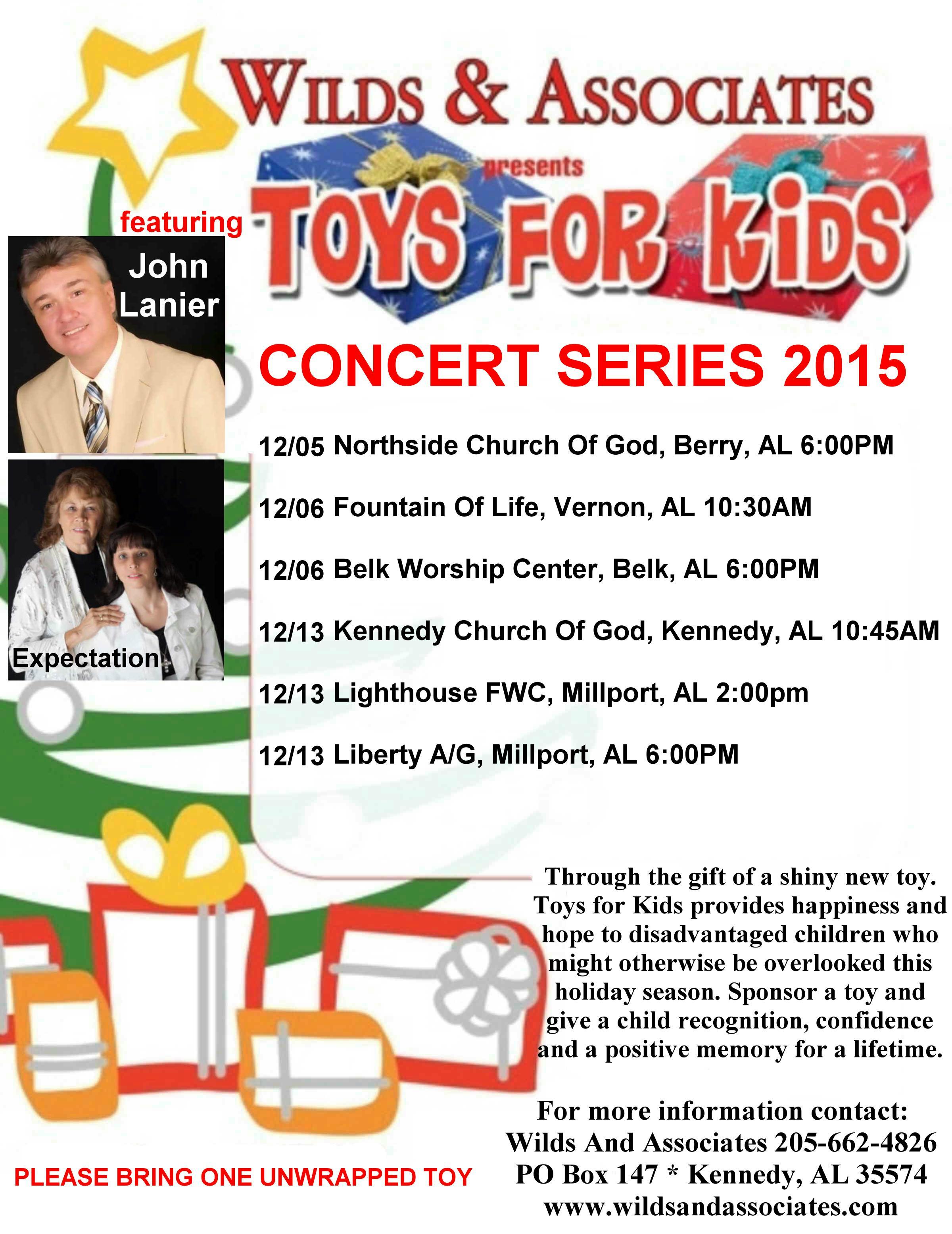 Toys For Kids Concert Series …Through the gift of a shiny new toy. Toys for Kids provides happiness and hope to disadvantaged children who might otherwise be overlooked this holiday season. Sponsor a toy and give a child recognition, confidence and a positive memory for a lifetime.