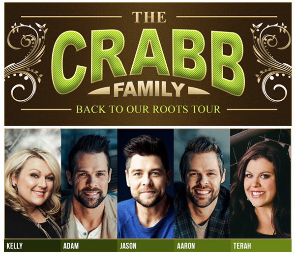 Nashville, TN – The Crabb Family is headed back on the road together for the ‘Back To Our Roots’ Tour! Kelly, Adam, Jason, Aaron and Terah announced the news today. The tour will be presented and promoted by Global Promotions under the direction of Paul Pitts and will begin in January 2017 for a select number of dates.
