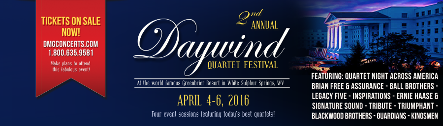 Hendersonville, TN –DMG Concerts is excited to announce plans for the 2nd Annual Daywind Quartet Festival at the Greenbrier, to be held April 4-6, 2016.