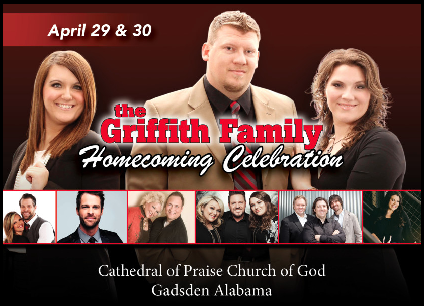 The Griffith Family Homecoming Celebration will be held at The Cathedral of Praise on 2703 West Meighan Boulevard in Gadsden, Alabama and advance tickets may be purchased through itickets.com.