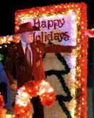 tinsel Christmas trees on the float leading the 31st Annual Bristol Christmas parade down State Streetin historic downtown Bristol, Tennessee/Virginia on Thursday evening.