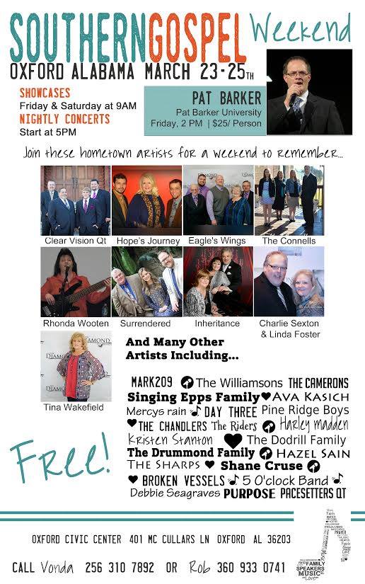 With its rich history in Southern Gospel music, Oxford, Alabama is the home for one of the most talked about events of 2017. Oxford is already abuzz about this year’s Southern Gospel Weekend. Over 30 great artists will be performing in Oxford from March 23rd through the 25th,2017.