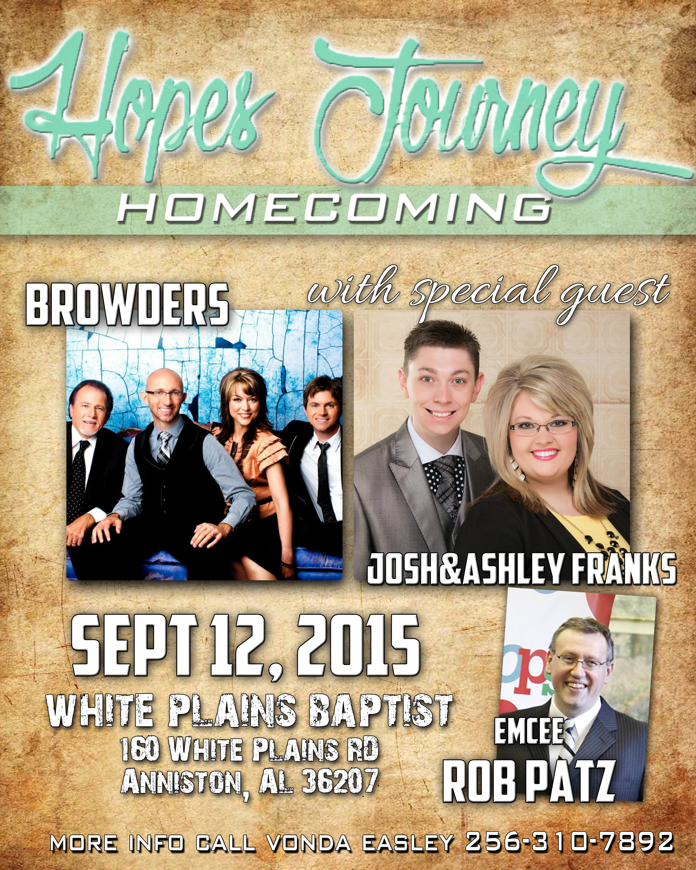 Hope’s Journey Homecoming on Saturday September 12th at White Plains Baptist Church in Anniston, Alabama.