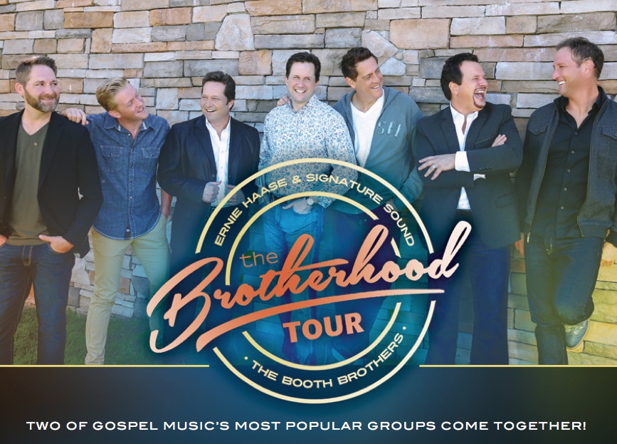 Johnson City, TN – What do classic hit songs like “Stand By Me,†“He Saw It All,†“Get Away Jordan,†“Still Feelin’ Fine,†“Oh What A Savior,†“What Salvation’s Done For Me,†“Trying To Get A Glimpse,†and “I Played In The Band And Sang In The Choir†all have in common? The answer – these hit songs are ones Gospel Music lovers can expect to hear as multi-award winning groups Ernie Haase & Signature Sound and The Booth Brothers bring the Brotherhood Tour to multiple cities nationwide.