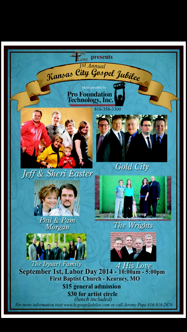 For more information On The Kansas City Gospel Jubilee or to purchase tickets, contact Jeremy Pope at 816-918-2676 or visit www.kcgospeljubilee.com , tickets will go on sale June 1st.