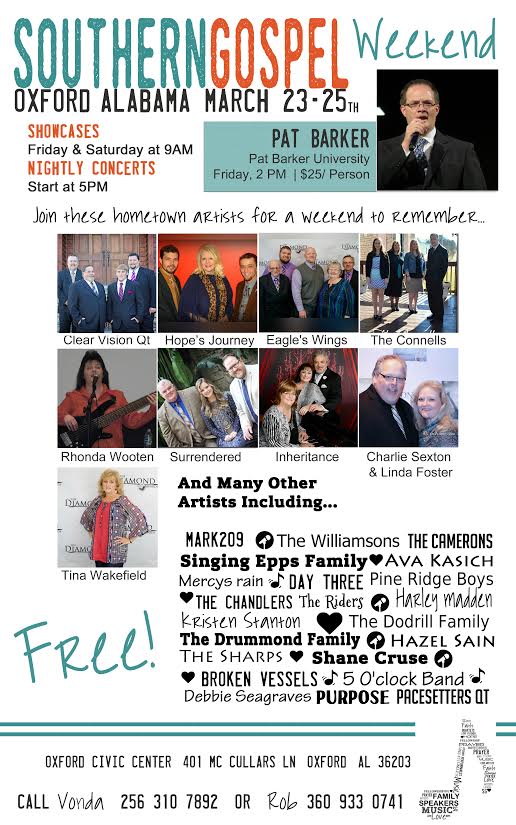 With its rich history in Southern Gospel music, Oxford, Alabama is the home for one of the most talked about events of 2017. Oxford is already abuzz about this year’s Southern Gospel Weekend. Over 30 great artists will be performing in Oxford from March 23rd through the 25th,2017.