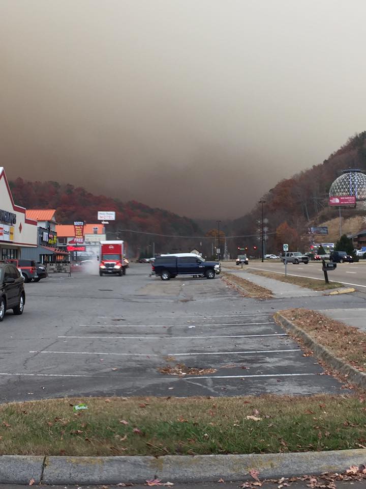 From City of Pigeon Forge Fire Department The City of Pigeon Forge and the surrounding communities are currently seeing a large amount of residual smoke from the fire in the National Park. The sunlight is causing it to have a red tint. We ask that you follow the States air quality alert recommendations. There are currently no fires near any home communities to be concerned of.