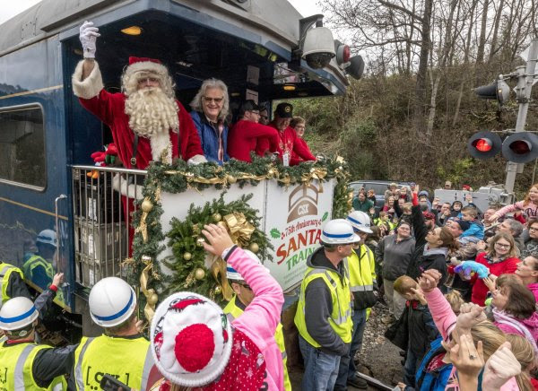 Skaggs joined Santa Claus and volunteers from the Kingsport Chamber, Food City, Appalachian Power, Soles4Souls and presenting sponsor CSX Transportation in handing out more than 15 tons of gifts at the 14 stops along the route.