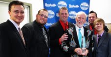 Doyle Lawson & Quicksilver following ICM Awards win. L to R: Jason Barie, Josh Swift, Corey Hensley, Doyle Lawson, Mike Rogers and Joe Dean.