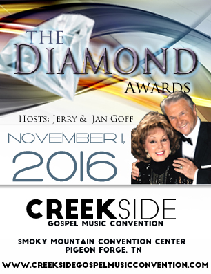 SGNScoops is proud to release the Top Five nominees for the 2016 Diamond Awards. Vote HERE The Diamond Awards will be presented on November 1st at the Smoky Mountain Convention Center in Pigeon Forge, Tennessee, during the Creekside Gospel Music Convention. The Diamond Awards gala is a special time of honouring artists and industry personnel who give so much of their lives to this music we love. The evening is full of wonderful music, surprise guests and memorable moments, all made special through the MC talents of Dr. Jerry and Jan Goff.